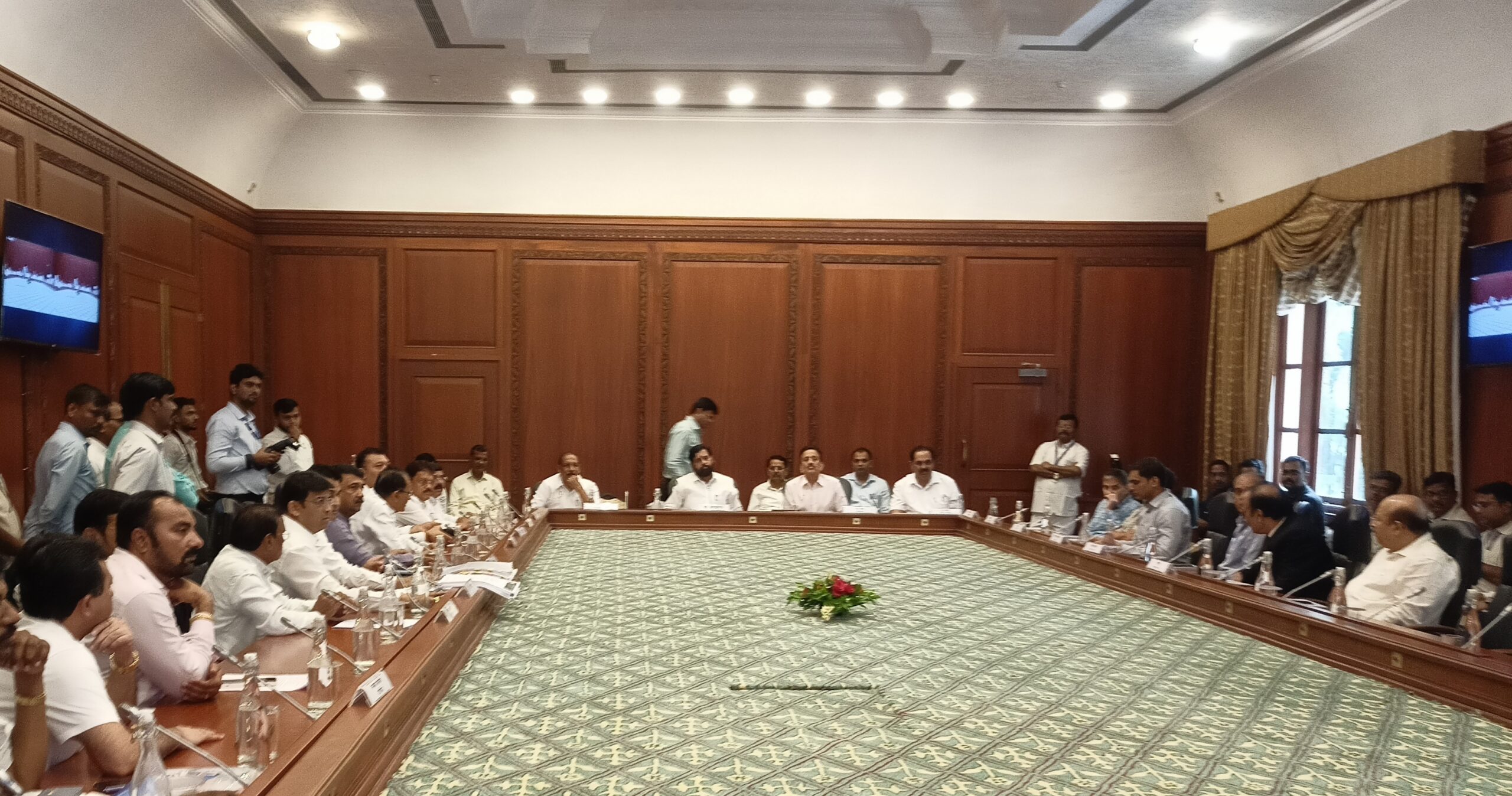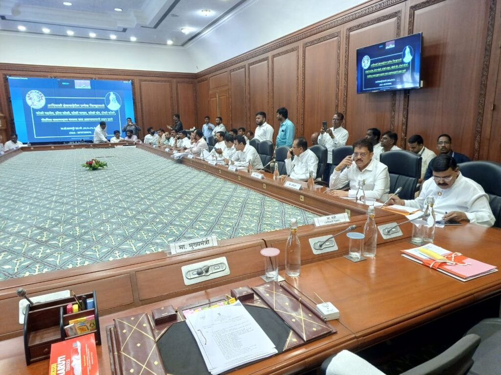 या महत्वपूर्ण बैठकीस माननीय मुख्यमंत्री सोबतच आदिवासी विकास मंत्री विजयकुमार गावित, ग्रामविकास मंत्री गिरीश महाजन, मदत व पुनर्वसन मंत्री अनिल पाटील, आमदार रमेशदादा पाटील, आमदार सुरेश भोळे, आमदार चिमणराव पाटील, खा.उन्मेष पाटील , महसूल व वन विभागाचे अतिरिक्त मुख्य सचिव राजगोपाल देवरा, आदिवासी विकास विभागाचे सचिव विजय वाघमारे, सामाजिक न्याय विभागाचे सचिव सुमंत भांगे, आदिवासी संशोधन व प्रशिक्षण संस्थेचे आयुक्त डॉ. राजेंद्र भारूड , हे उपस्थित होते.