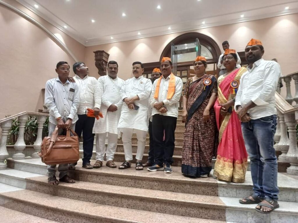 आज राज्याचे मुख्यमंत्री मा.श्री. एकनाथजी शिंदे यांची सह्याद्री अतिथीगृह, मुंबई येथे कोळी महासंघाचे राष्ट्रीय अध्यक्ष व भाजपा आमदार रमेशदादा पाटील यांच्या पुढाकाराने संघर्ष यात्रेमध्ये सहभागी झालेल्या समाजबांधवांच्या शिष्टमंडळाने भेट घेऊन निवेदन दिले. या बैठकी दरम्यान कोळी महासंघाचे युवा प्रदेशाध्यक्ष अॅड. चेतनदादा पाटील व अन्य प्रतिनिधी उपस्थित होते.