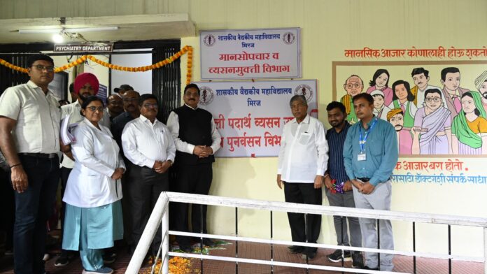 शासकीय वैद्यकीय महाविद्यालय व रूग्णालय, मिरज येथे अद्ययावत व्यसनमुक्ती व पुनर्वसन केंद्राच्या उद्घाटन प्रसंगी ते बोलत होते. यावेळी जिल्हाधिकारी अशोक काकडे, अधिष्ठाता डॉ. प्रकाश गुरव, जिल्हा शल्य चिकित्सक डॉ. विक्रमसिंह कदम, मानसोपचार विभाग प्रमुख डॉ. राजकिरण साळुंखे, सहयोगी प्राध्यापक डॉ. महेश कुंभार, आदि उपस्थित होते.
