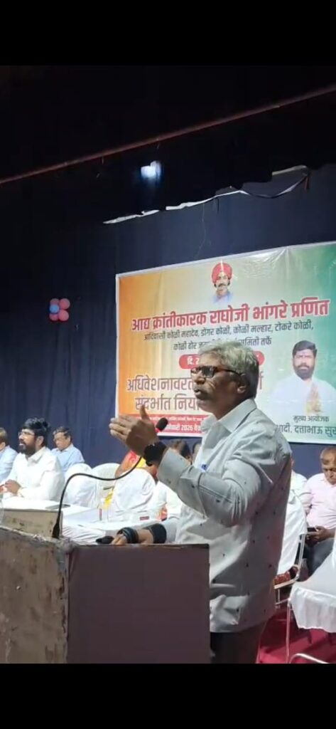 छत्रपती संभाजीनगर (माधव बुधवारे) – दिनांक ४जानेवारी २०२६ रोजी दुपारी यशवंतराव चव्हाण नाट्यगृह छत्रपती संभाजी नगर येथे आदिवासी कोळी समाजाची संघटनेच्या प्रमुख पदाधिकारी यांची विशेष बैठक राघोजी भांगरे प्रणित संघर्ष समिती चे प्रमुख दत्ता सुरवसे आणि आदिवासी कोळी समाज मराठवाडा विभाग समन्वय समिती चे सखाराम बीऱ्हाडे आणि माधव बुधवारे यांच्या संयोजनात मध्ये संपन्न झाली…