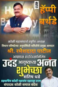 अशा या प्रयत्नशील आणि कर्तृत्वशील नेतृत्वाला कोळी समाज संदेश परिवाराच्या वतीने वाढदिवसानिमित्त हार्दिक शुभेच्छा देतो…सतीश धडे संपादक कोळी समाज संदेश